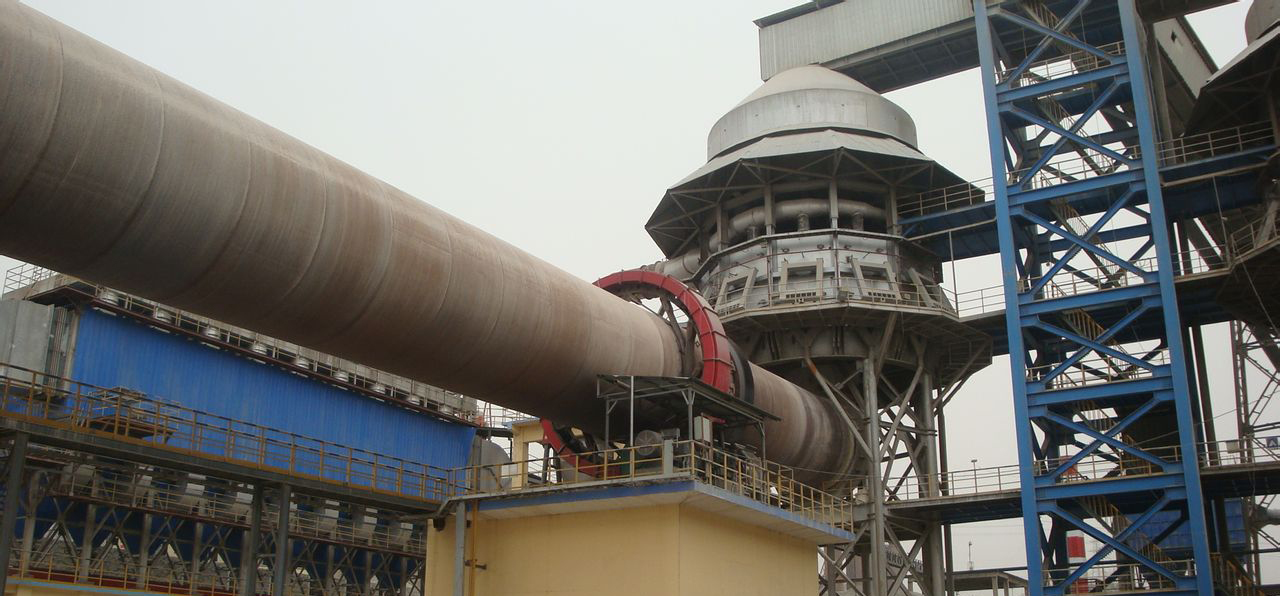 物料從窯尾(筒體的高端)進(jìn)入窯內(nèi)煅燒。由于筒體的傾斜和緩慢的回轉(zhuǎn)作用,物料即沿圓周方向翻滾又向軸向(從高端向低端)移動(dòng),在窯內(nèi)完成分解和燒成的工藝過程,經(jīng)過物理和化學(xué)變化,最后,經(jīng)窯頭罩排出。燃料由窯頭噴入窯內(nèi),燃燒生成的廢氣與物料進(jìn)行熱交換后,由窯尾導(dǎo)出。