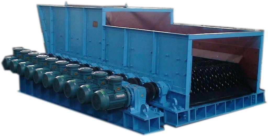 物料從入料口進入篩箱后,由于前5根篩軸和水平成15°大夾角,物料開始在自重和篩片轉(zhuǎn)動的雙重作用下以較快速度向下移動同時進行篩分,此為初步粗篩分階段。大部分物料經(jīng)此階段后被篩分完畢并平鋪在整個篩面上;當物料進入后5根篩軸以后,由于篩軸排列近乎水平,篩軸和水平成5°,物料前進速度減慢,此為篩分的精篩階段,物料經(jīng)此階段后小于60mm的粒度已被篩下,大于60mm的物料經(jīng)出料口被送入破碎機進行下一步破碎。